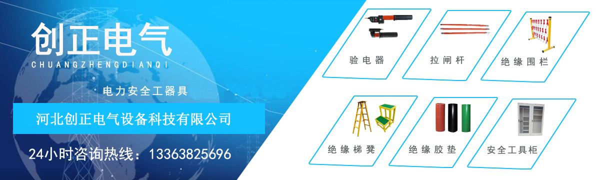 河北創正電氣設備科技有限公司主要經營產品包括:高壓驗電器、高壓接地線、高壓拉閘桿絕緣橡膠墊絕緣伸縮圍欄絕緣梯、安全工具柜、絕緣凳擋鼠板、安全警示帶、絕緣臺、安全帶、腳扣、安全帽、標識牌、絕緣手套、絕緣靴等電力安全工器具。公司以“服務電力系統,努力永無止境”為目標,以“人才就是生產力”為戰略,以經驗為依托,以理念為指導,以員工為基礎,以市場為支撐,貫徹“以顧客需求為上”的經營理念,以合格的質量,合理的價位,適應市場的需求。 [詳細介紹]
