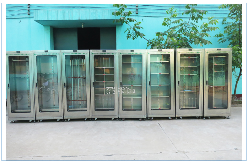 1、柜體是冷軋鋼板卷壓成型,厚度有1.0mm1.2mm1.5mm供選擇。柜體表面采用靜電防腐噴塑工藝,顏色為駝灰色,柜門裝有通體透明鋼化玻璃,透過玻璃可以看到分類有序的工器具。
