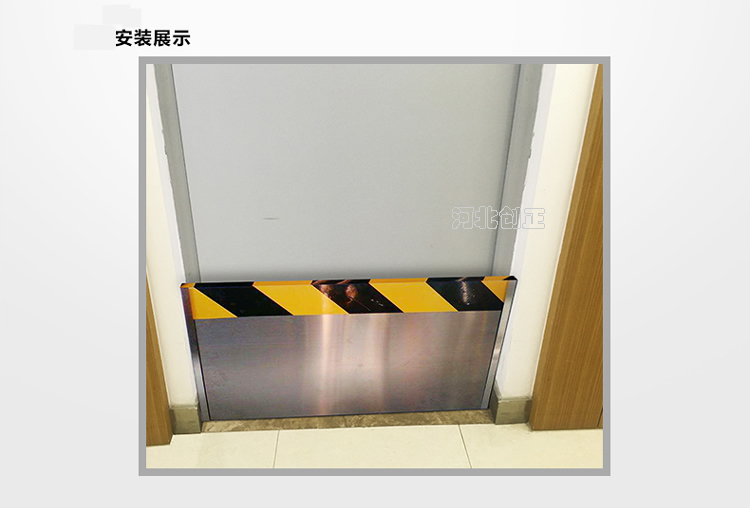 不銹鋼擋鼠板安裝簡單,先將膨脹螺釘(內膨脹也叫漲塞)穿入卡槽上的安裝孔,再將兩側的卡槽沿門框將膨脹螺釘平行固定到門框兩邊墻體上,卡槽安裝成功。使用時把擋鼠板順卡槽的內徑滑入卡槽之中。不用時將擋鼠板取出,固定在墻體上的卡槽不影響門的正常開關,不用取下。