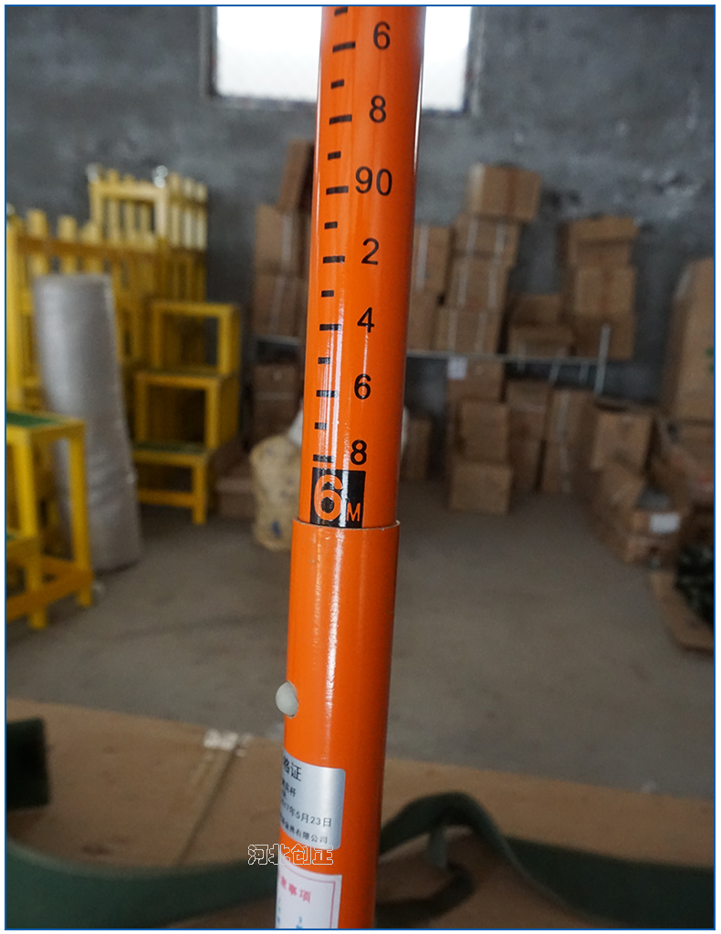 4、測量時,由內(nèi)層絕緣桿向上抽起,每根絕緣桿的刻度對應(yīng)外面一層絕緣桿的尺寸刻度,然后旋緊絕緣桿,測高桿的金屬掛鉤掛在高壓線路上,此時外側(cè)的絕緣桿上沿對齊抽起的絕緣桿的刻度;