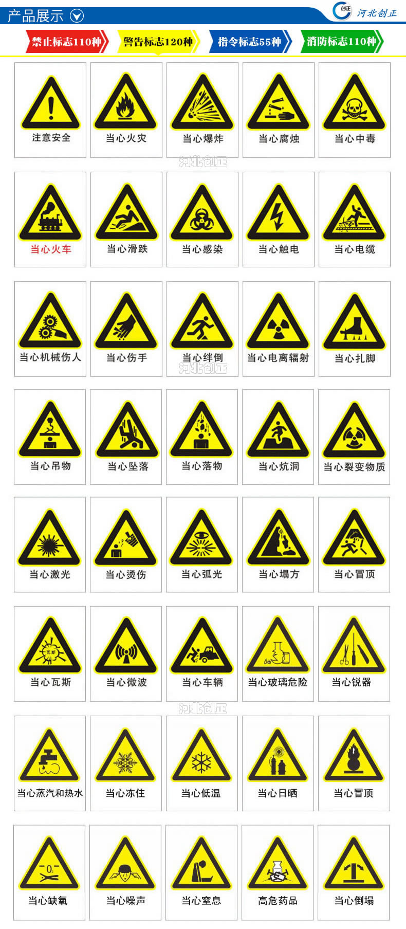 2、產品內容:禁止、指令、提示、線路相位、消防、通信、交通等。