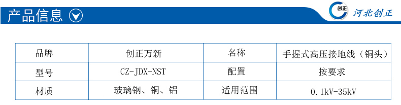 (1)型號:CZ-JDX-NST-6kV手握式高壓接地線;