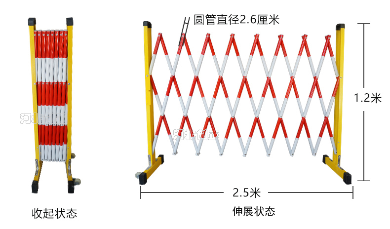 3、產品特點:紅白相間有警示作用;配有底輪,搬運方便。