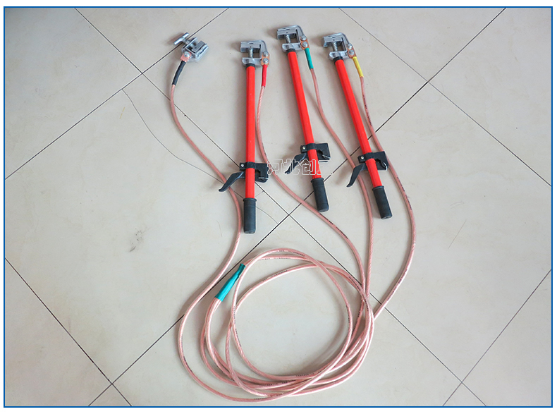 (2)、安裝:將接地軟銅線和接線端子固定在接地棒上的接電夾的相應(yīng)位置上,將接地線尾線的接線端子固定在接地夾或地針上,構(gòu)成一套完整的接地線。