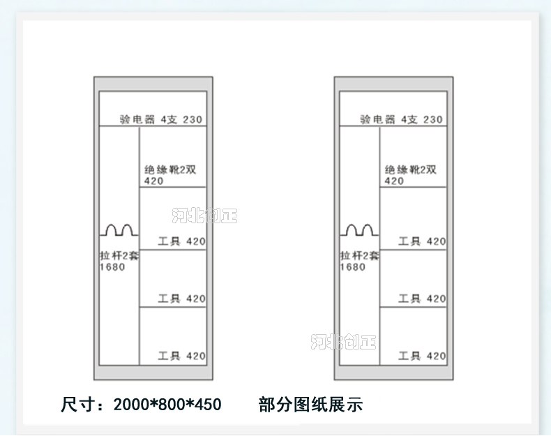 1、柜體是冷軋鋼板卷壓成型,厚度有1.0mm1.2mm1.5mm供選擇。柜體表面采用靜電防腐噴塑工藝,顏色為駝灰色,柜門裝有通體透明鋼化玻璃,透過玻璃可以看到分類有序的工器具。